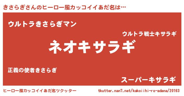 | 男性向けラノベタイトル風あだ名 | 『きさらぎという概念が存在しない退屈な世界 』 |