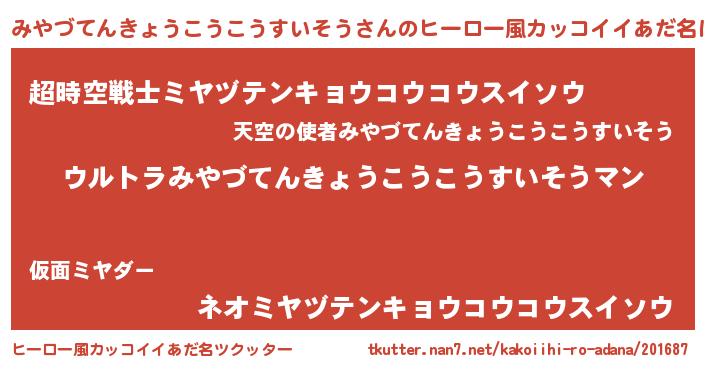 | ファンタジー風あだ名 | 『エターナルミヤヅテンキョウコウコウスイソウー』 |