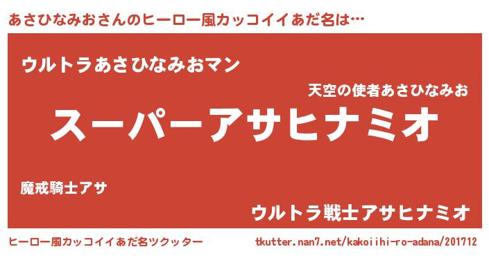 | 男性向けラノベタイトル風あだ名 | 『あさひなみお~年齢イコール彼女いない歴の魔法使い~』 |