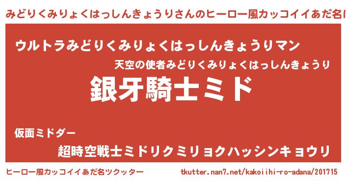 | ポケモン風あだ名 | 『ヒミドリクミリョクハッシンキョウリ』 |