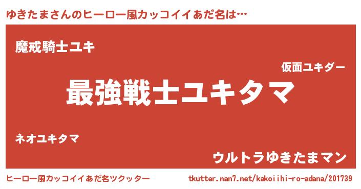 | 男性向けラノベタイトル風あだ名 | 『Re:ゆきたまから始める異世界生活』 |