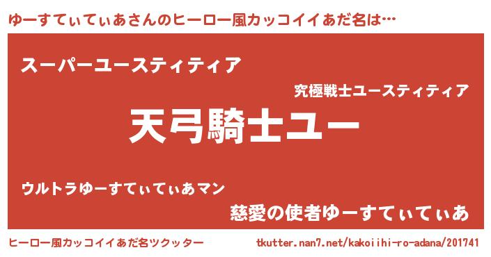 | 女子向けラノベタイトル風あだ名 | 『ゆーすてぃてぃあ様がみてる』 |