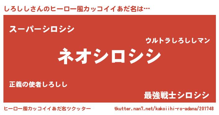| ヘコむあだ名 | 『しろしし(苦笑)』『しろにゅー』 |
