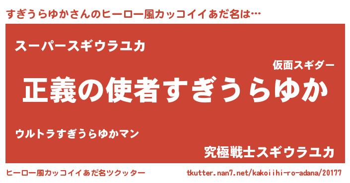| 男性向けラノベタイトル風あだ名 | 『緋弾のスギウラユカ』 |