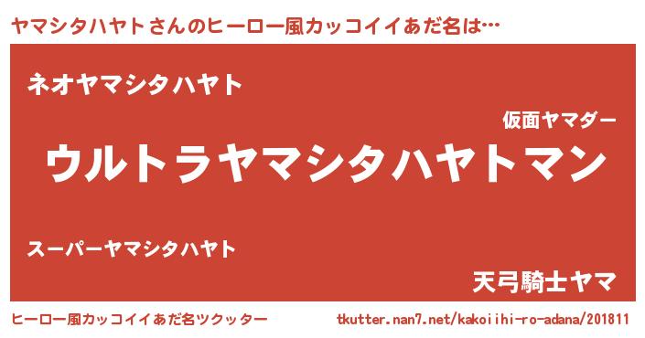 | 男性向けラノベタイトル風あだ名 | 『やはりヤマシタハヤトの青春ラブコメはまちがっている 』 |