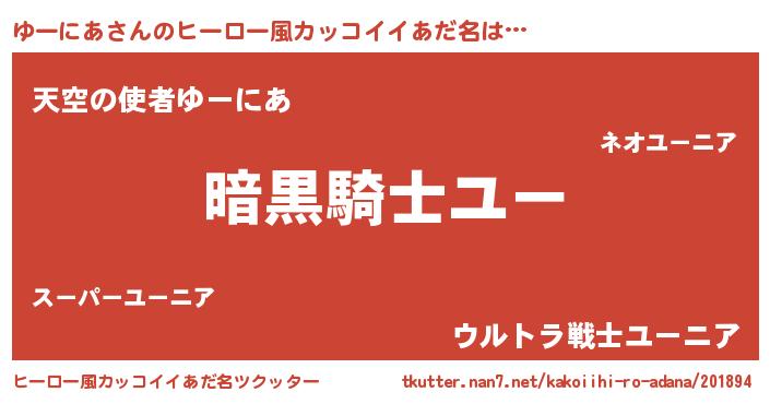 | 男性向けラノベタイトル風あだ名 | 『ダンジョンにゆーにあを求めるのは間違っているだろうか』 |
