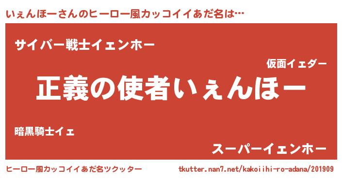 | 男性向けラノベタイトル風あだ名 | 『おまえをオタクにしてやるから、俺をいぇんほーにしてくれ! 』 |