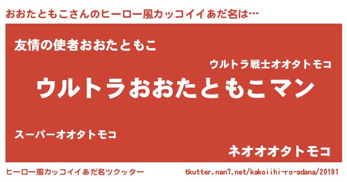 | 男性向けラノベタイトル風あだ名 | 『うちの娘の為ならば、俺はもしかしたらおおたともこも倒せるかもしれない。』 |