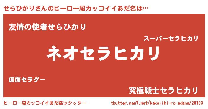 | 女子向けラノベタイトル風あだ名 | 『異世界で失敗しない100のせらひかり』 |