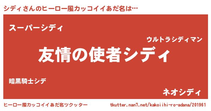| 男性向けラノベタイトル風あだ名 | 『おまえをオタクにしてやるから、俺をシディにしてくれ! 』 |