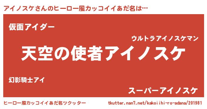 | 男性向けラノベタイトル風あだ名 | 『ノーゲーム・ノーアイノスケ』 |