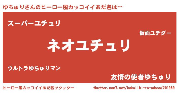 | 意味不明あだ名 | 『永久保存ゆちゅり』『ペロリンゆちゅり』 |