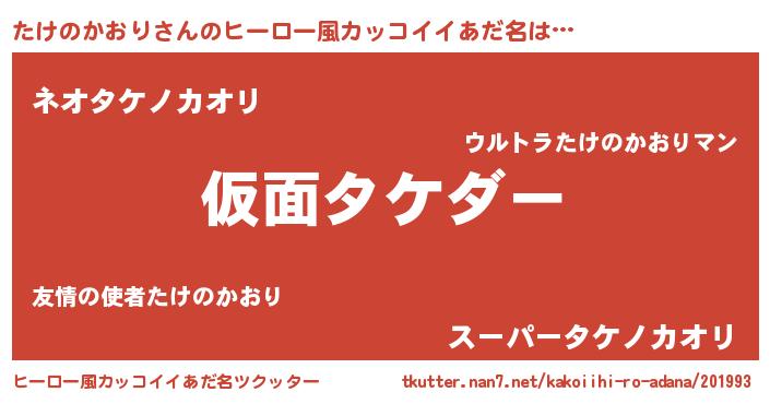 | 男性向けラノベタイトル風あだ名 | 『この素晴らしい世界にたけのかおりを!』 |