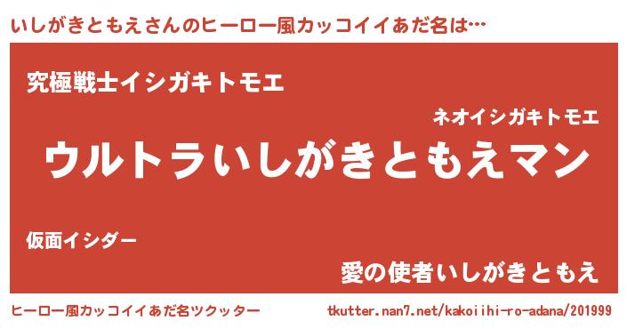 | 肩書あだ名 | 『いしがきともえ大将』 |