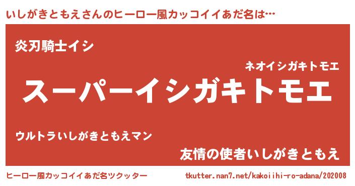 | 男性向けラノベタイトル風あだ名 | 『イシガキトモエアートオンライン』 |