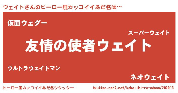 | 女子向けラノベタイトル風あだ名 | 『ウェイト恋絵巻』 |