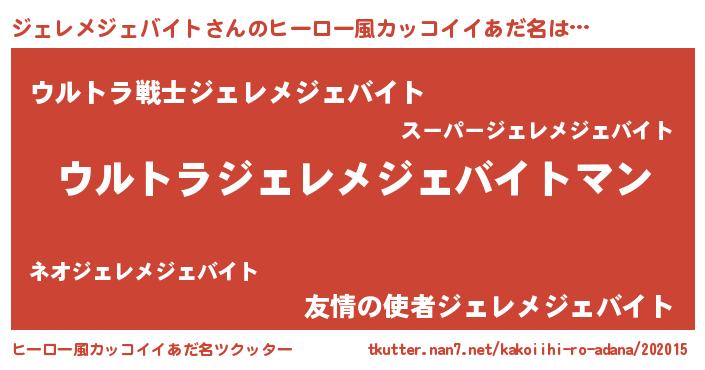 ジェレメジェバイトさんのヒーロー風カッコイイあだ名をツクッター!