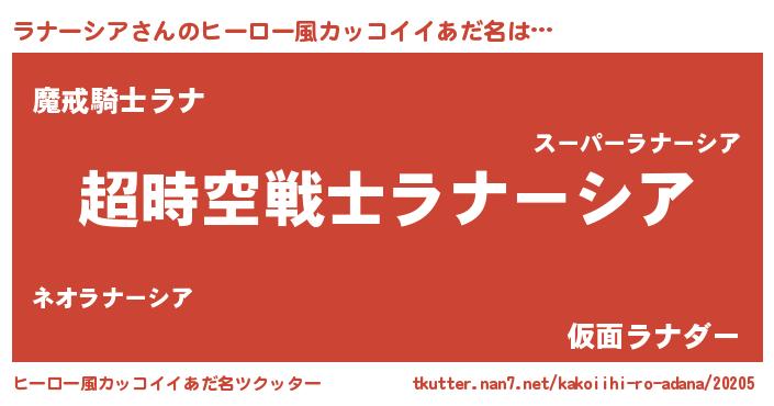 | 女子向けラノベタイトル風あだ名 | 『ラナーシアなんてお断りですっ。』 |