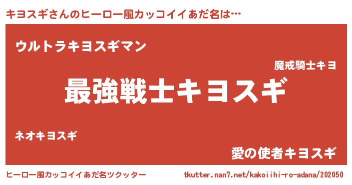 | ファンタジー風あだ名 | 『ゼキヨトゥ』『エターナルキヨスギー』 |