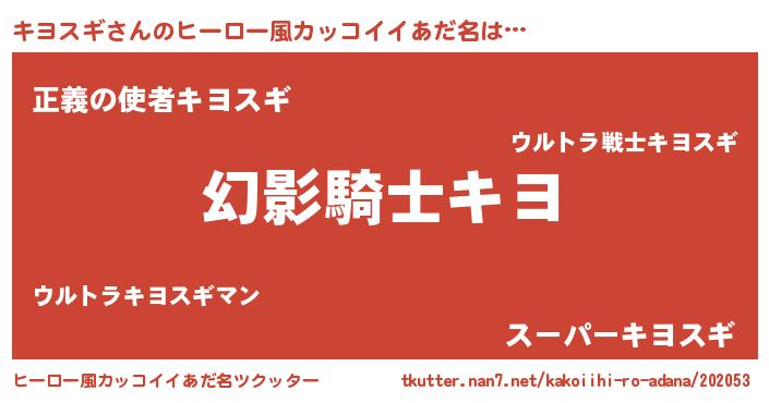 | 意味不明あだ名 | 『つくし科キヨスギ属』『自称キヨスギ』 |