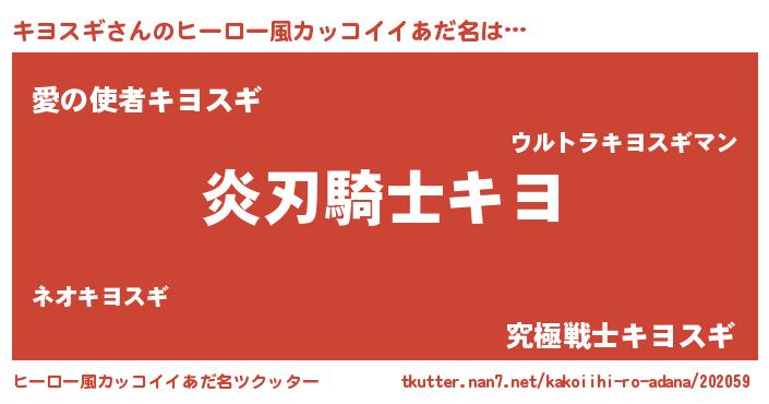 | 意味不明あだ名 | 『ニラ科キヨスギ属』『自称キヨスギ』 |