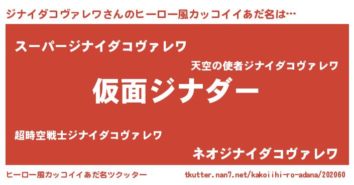 | ポケモン風あだ名 | 『ジーナイ』『ジナチュウ』 |