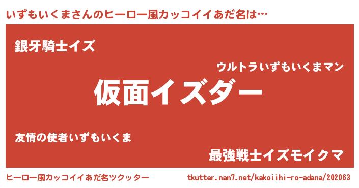 | 男性向けラノベタイトル風あだ名 | 『この素晴らしい世界にいずもいくまを!』 |