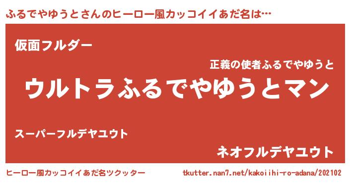 | 男性向けラノベタイトル風あだ名 | 『ふるでやゆうとに滅ぼされるだけの簡単なお仕事です』 |