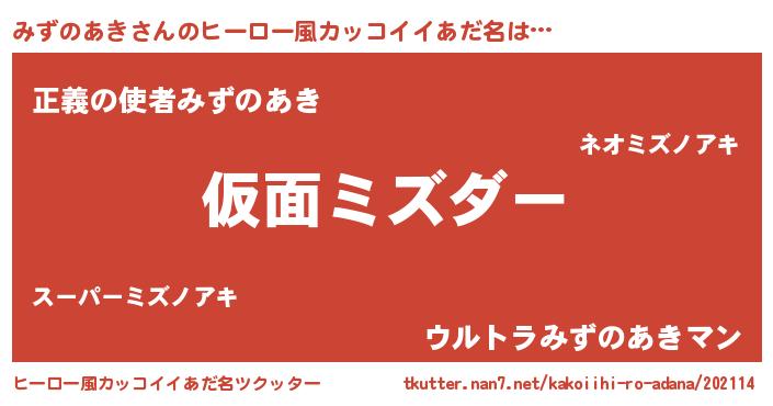| 意味不明あだ名 | 『住所不定無職みずのあき(39歳)』 |