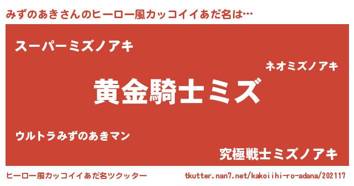 みずのあきさんのヒーロー風カッコイイあだ名をツクッター!
