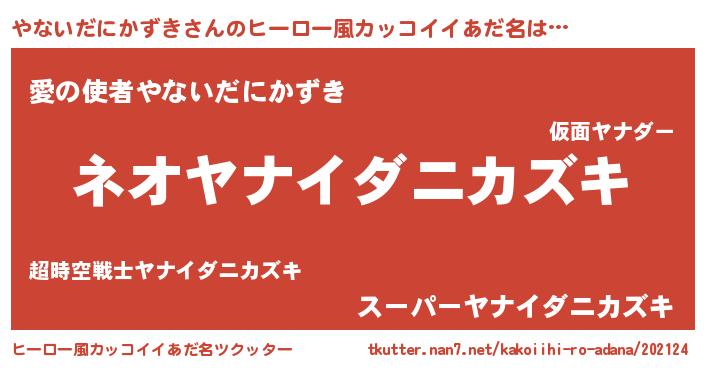 やないだにかずきさんのヒーロー風カッコイイあだ名をツクッター!