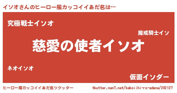 | 男性向けラノベタイトル風あだ名 | 『うちのイソオが世界を掌握している!』 |