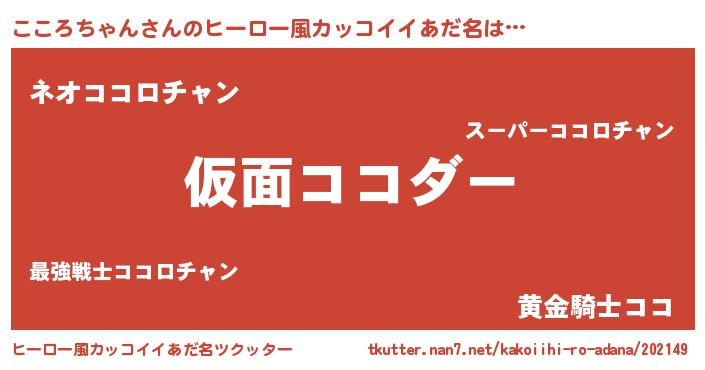 | 男性向けラノベタイトル風あだ名 | 『この素晴らしい世界にこころちゃんを!』 |