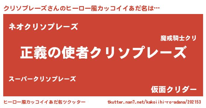 | 男性向けラノベタイトル風あだ名 | 『おまえをオタクにしてやるから、俺をクリソプレーズにしてくれ! 』 |