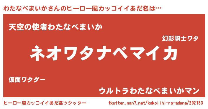 | 胡散臭い通販商品みたいなあだ名 | 『絶対に幸福をもたらす健康食品…その名も「わたなべまいか」』 |