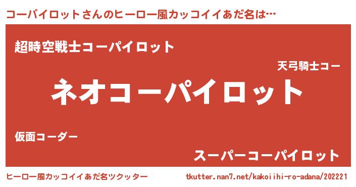 | 意味不明あだ名 | 『永久保存コーパイロット』 |