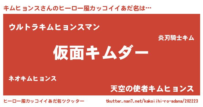 | 意味不明あだ名 | 『しいたけ科キムヒョンス属』 |