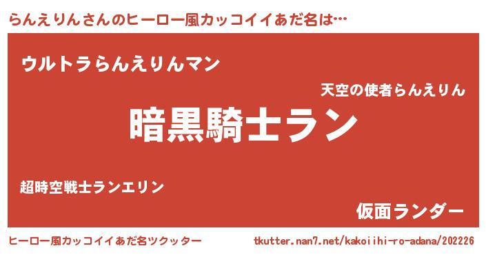 | 意味不明あだ名 | 『とにかく怪しいらんえりん』 |