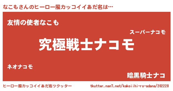 | 女子向けラノベタイトル風あだ名 | 『なこもストレイドッグス』 |