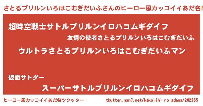 | ファンタジー風あだ名 | 『エターナルサトルプリルンイロハコムギダイフー』 |
