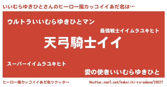 | ポケモン風あだ名 | 『ヒイイムラユキヒト』『イイムダネ』 |