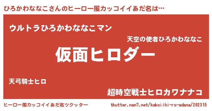 | 料理風あだ名 | 『ひろかわななこのカルパッチョ風』 |