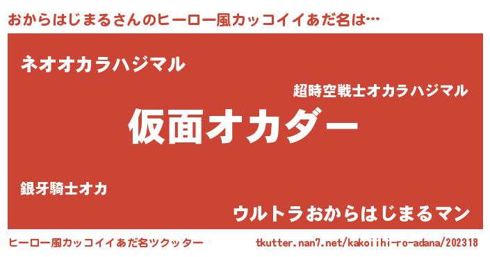 | 伝説のあだ名 | 『古より伝わる吟遊詩人おからはじまる』 |