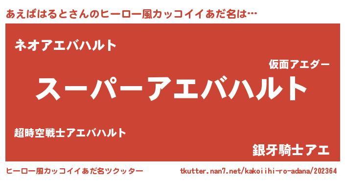 | 男性向けラノベタイトル風あだ名 | 『転生したらあえばはるとだった件』 |