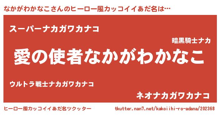 | 女子向けラノベタイトル風あだ名 | 『なかがわかなこ恋絵巻』 |