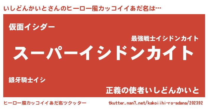 | 男性向けラノベタイトル風あだ名 | 『イシドンカイトアートオンライン』 |