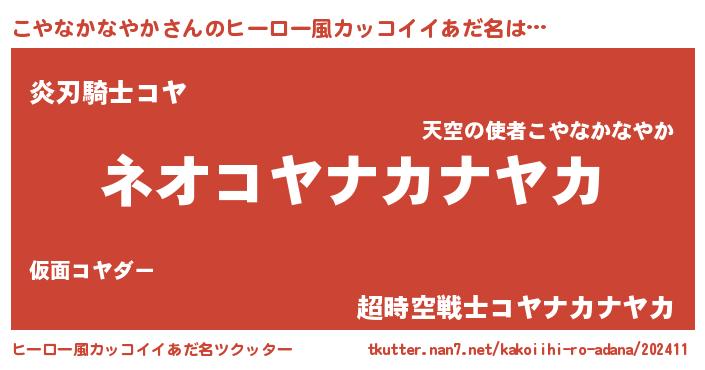 | 料理風あだ名 | 『こやなかなやかごはん』 |