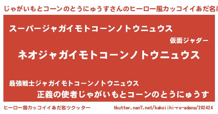 | 伝説のあだ名 | 『聞きしに勝る暗殺者じゃがいもとコーンのとうにゅうす』 |