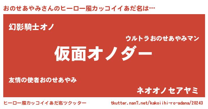 | 意味不明あだ名 | 『住所不定無職おのせあやみ(86歳)』 |