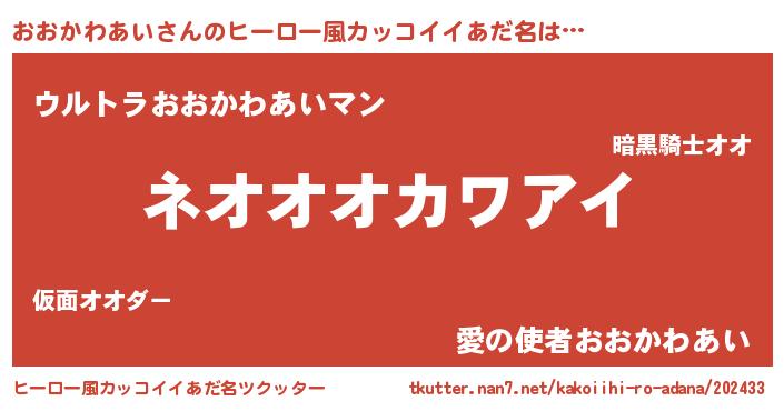 | 胡散臭い通販商品みたいなあだ名 | 『前代未聞の健康食品…その名も「おおかわあい」』 |